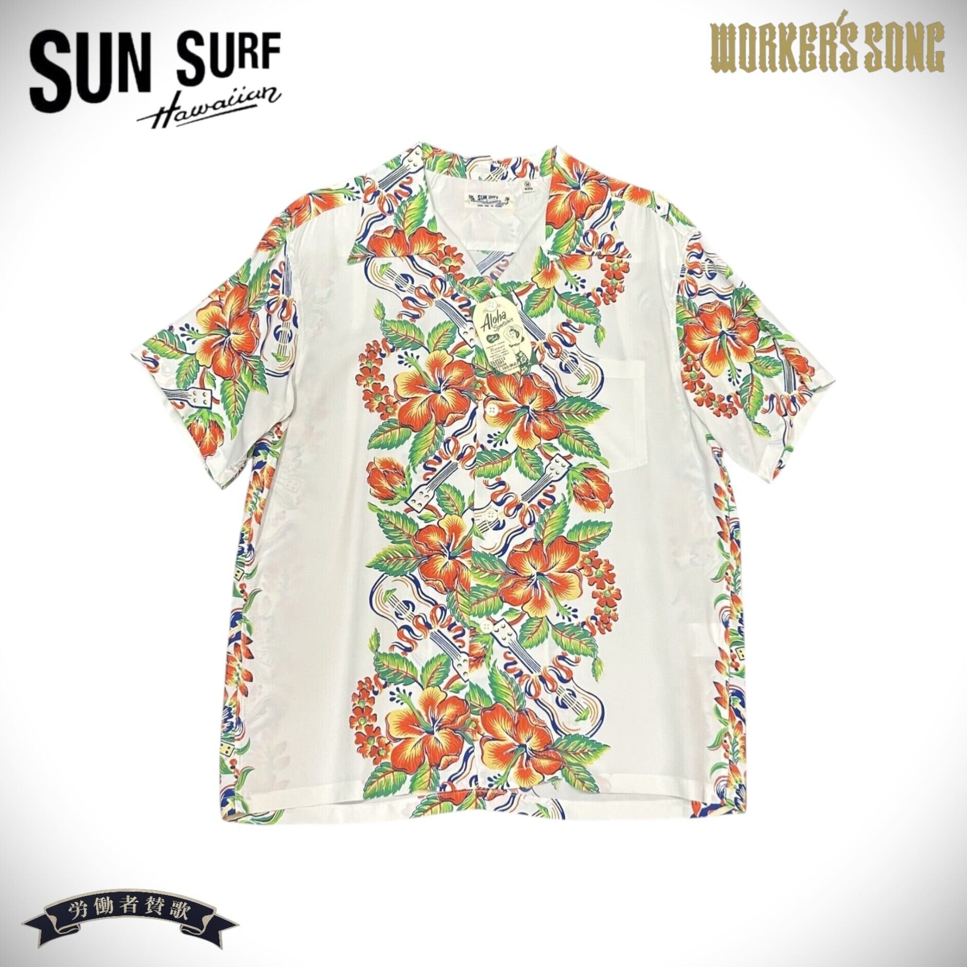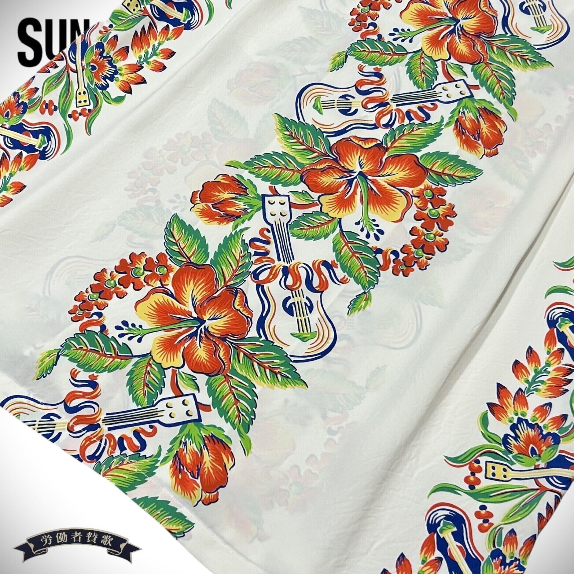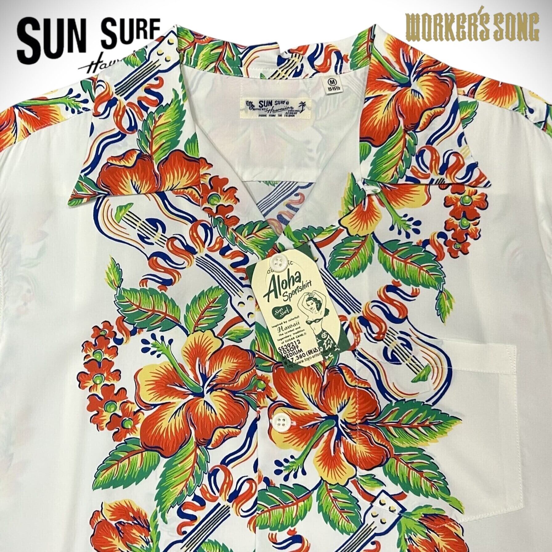 サンサーフ レーヨン アロハシャツ ハワイアン アメカジ ウクレレ ハイビスカス SS39212 105)オフホワイト Mサイズ