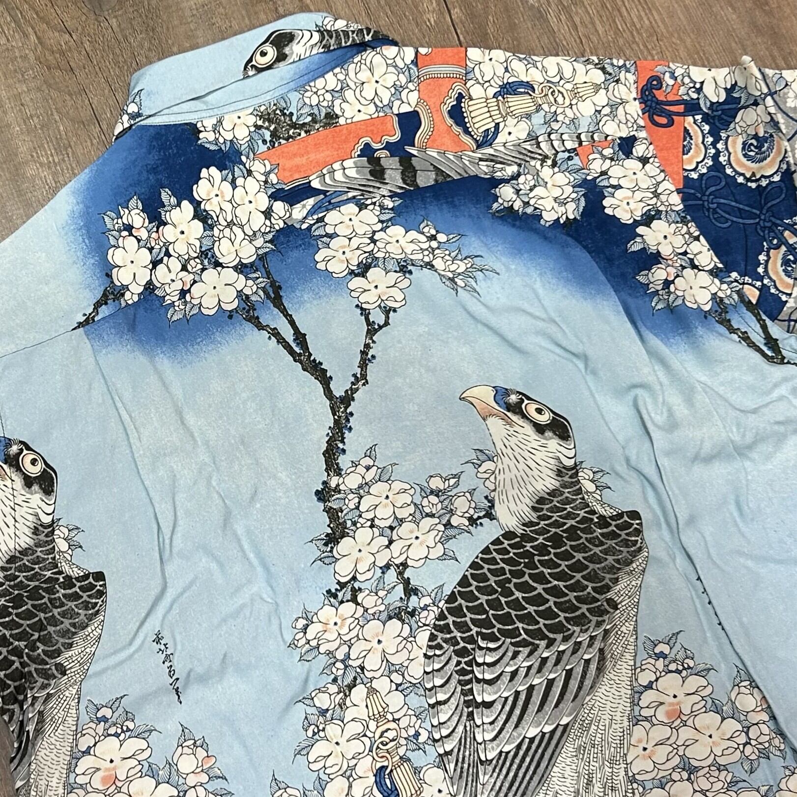 サンサーフ 葛飾北斎 スペシャル 花鳥画 アロハシャツ アメカジ 桜花に鷹図 ハワイアン SS39327 125)ブルー