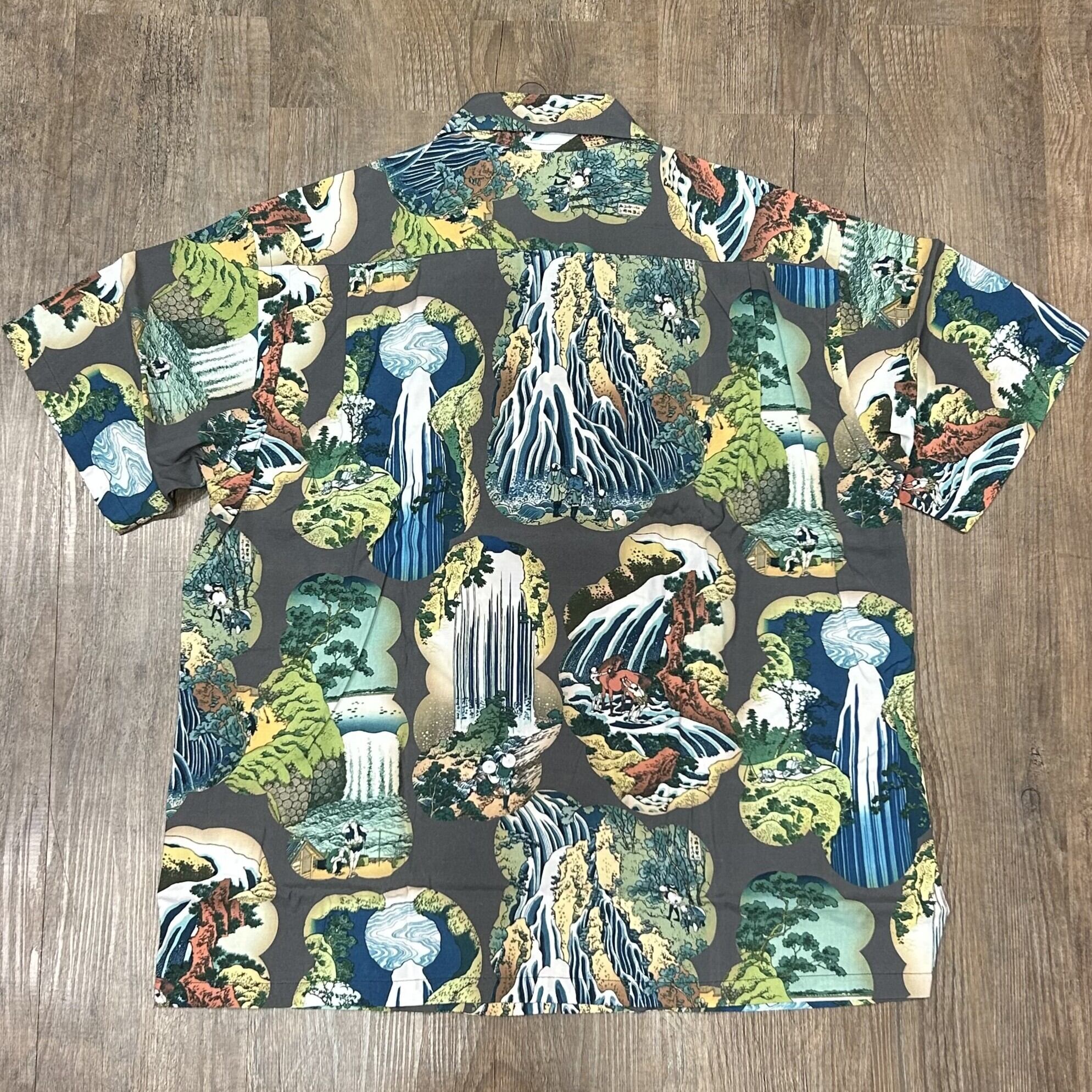 今回のシャツには全八作品の中の五つ、「和州吉野義経馬洗滝」「下野黒髪山きりふきの滝」「木曽路ノ奥阿弥陀の滝」「東都葵ヶ岡の滝」「美濃ノ国養老の滝」が使用されている。