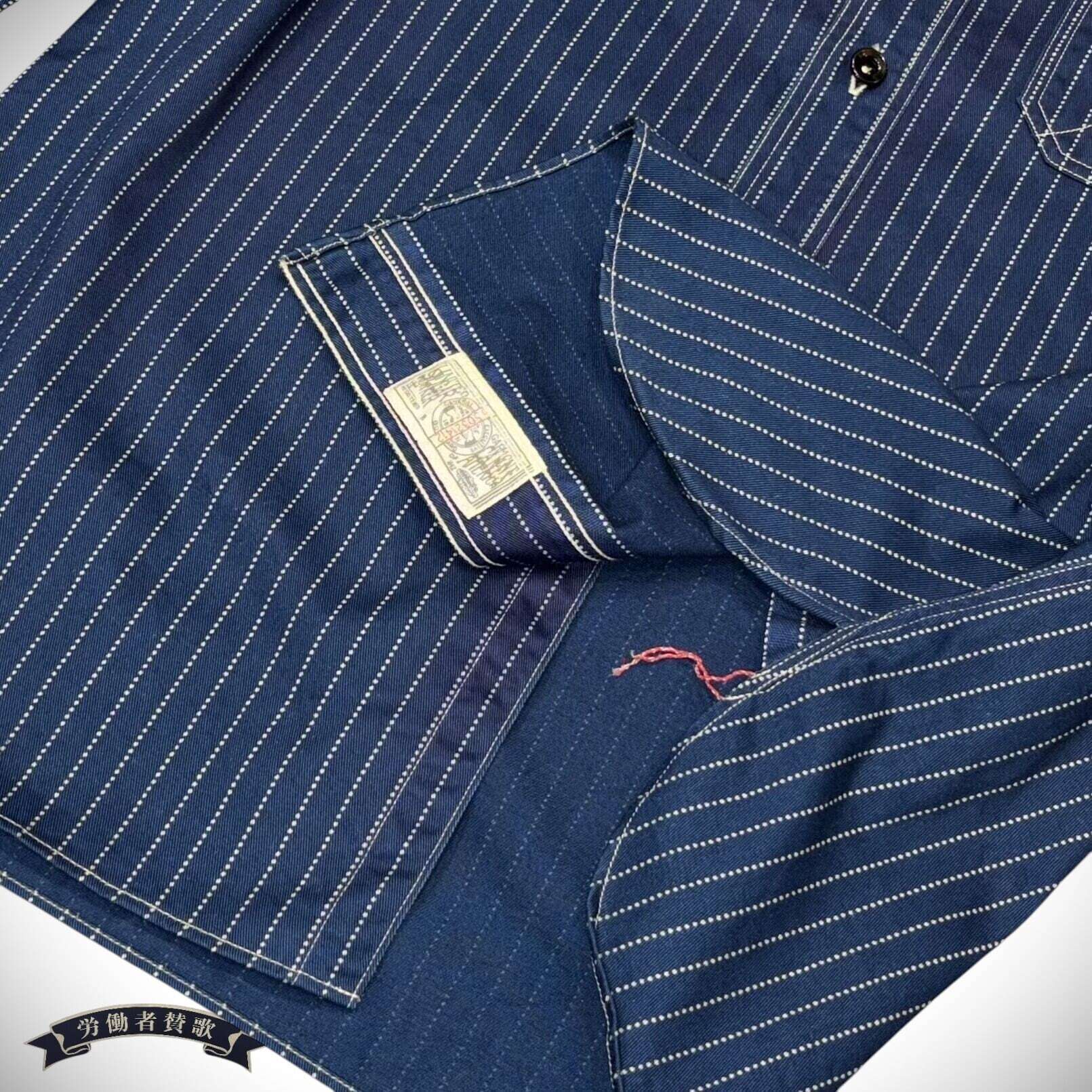 インディゴ染めした8.5オンスの生地をドットストライプ柄に抜染した「ウォバッシュストライプ」のワークシャツ。ワークウエア黎明期のヴィンテージをベースとしており、ディテールにドレスシャツの名残がみられる。同じ生地を使用したショートスリーブモデルも展開。