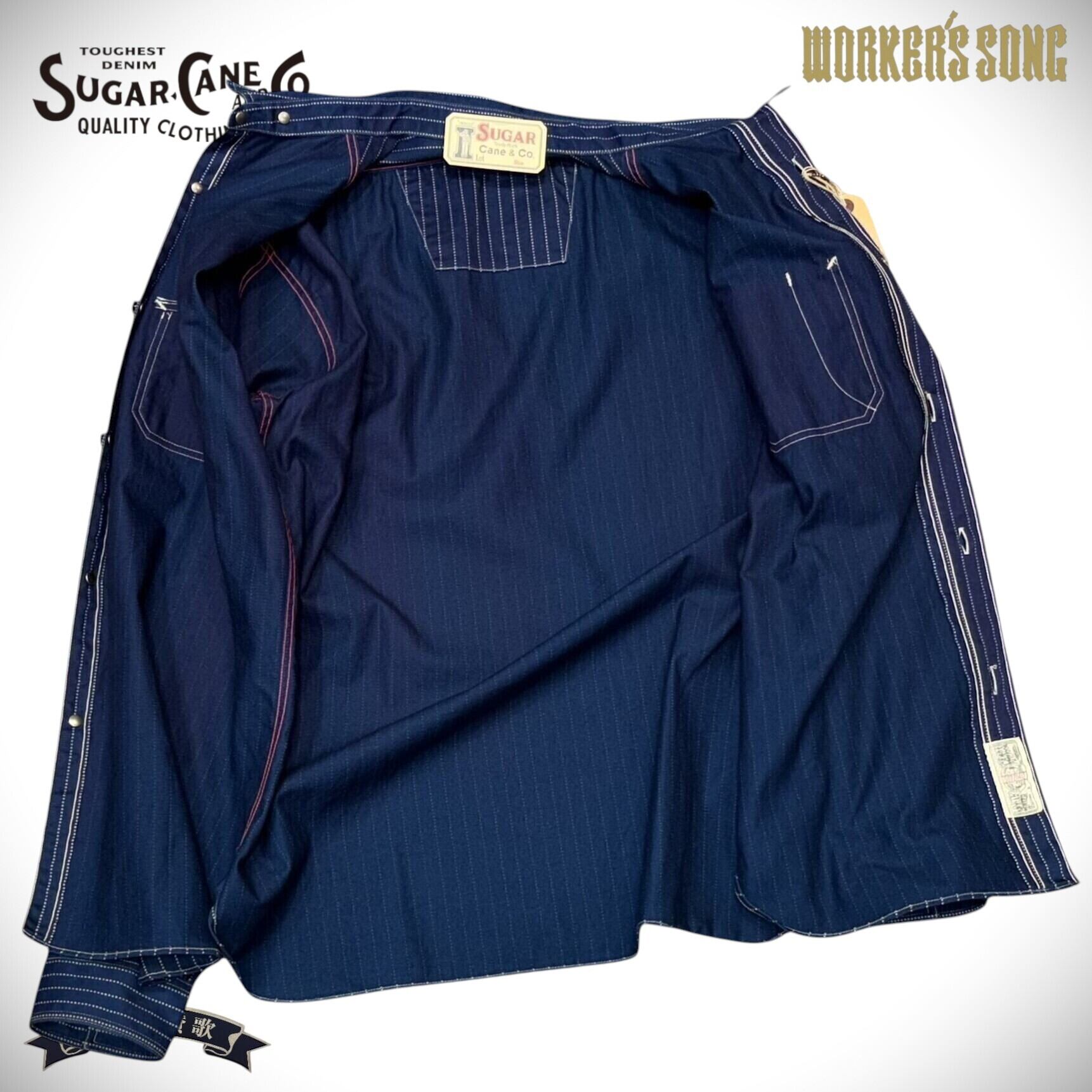 シュガーケーン ウォバッシュストライプ L/S ワークシャツ アメカジ SC25551A 421)ネイビー