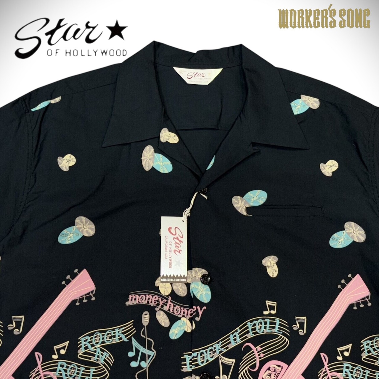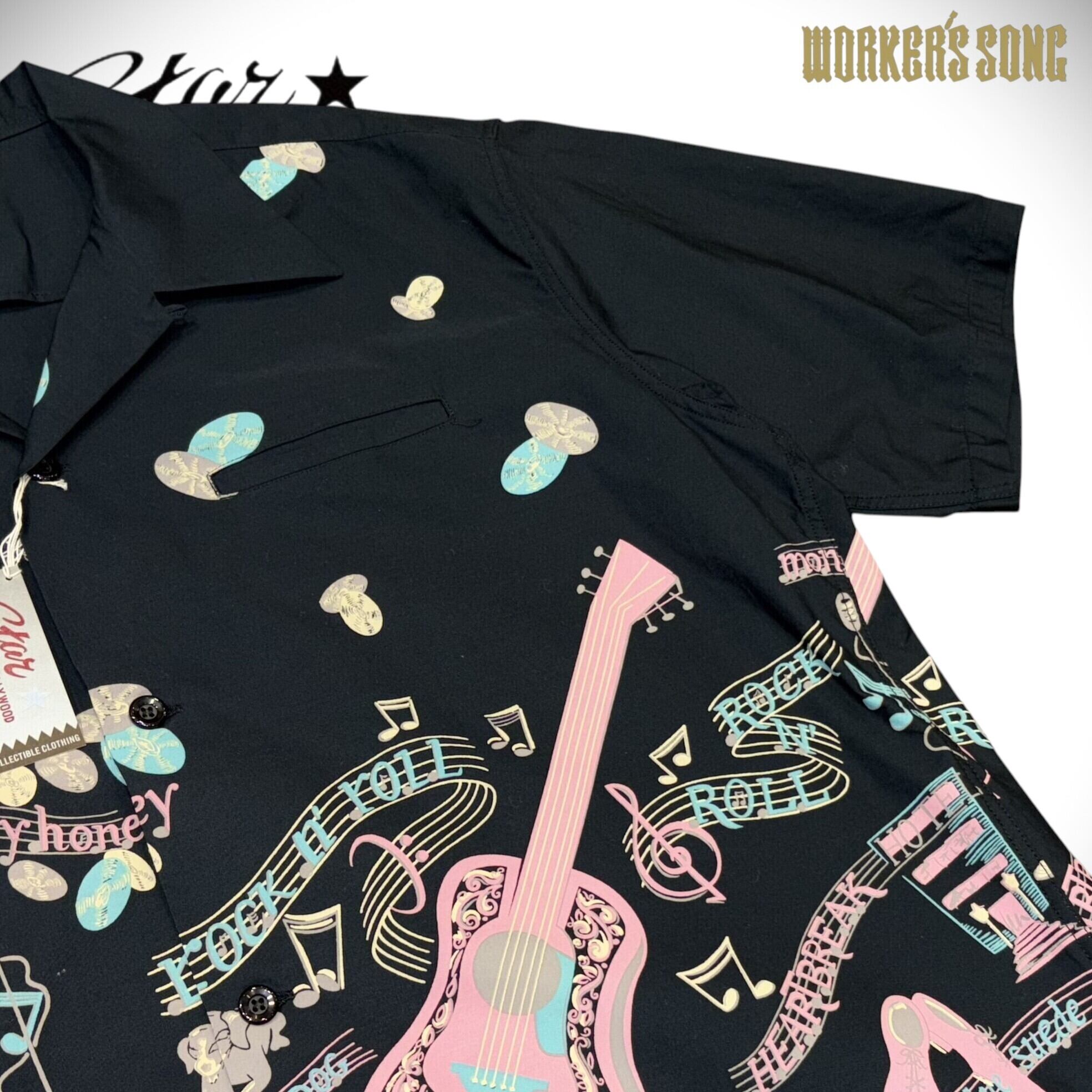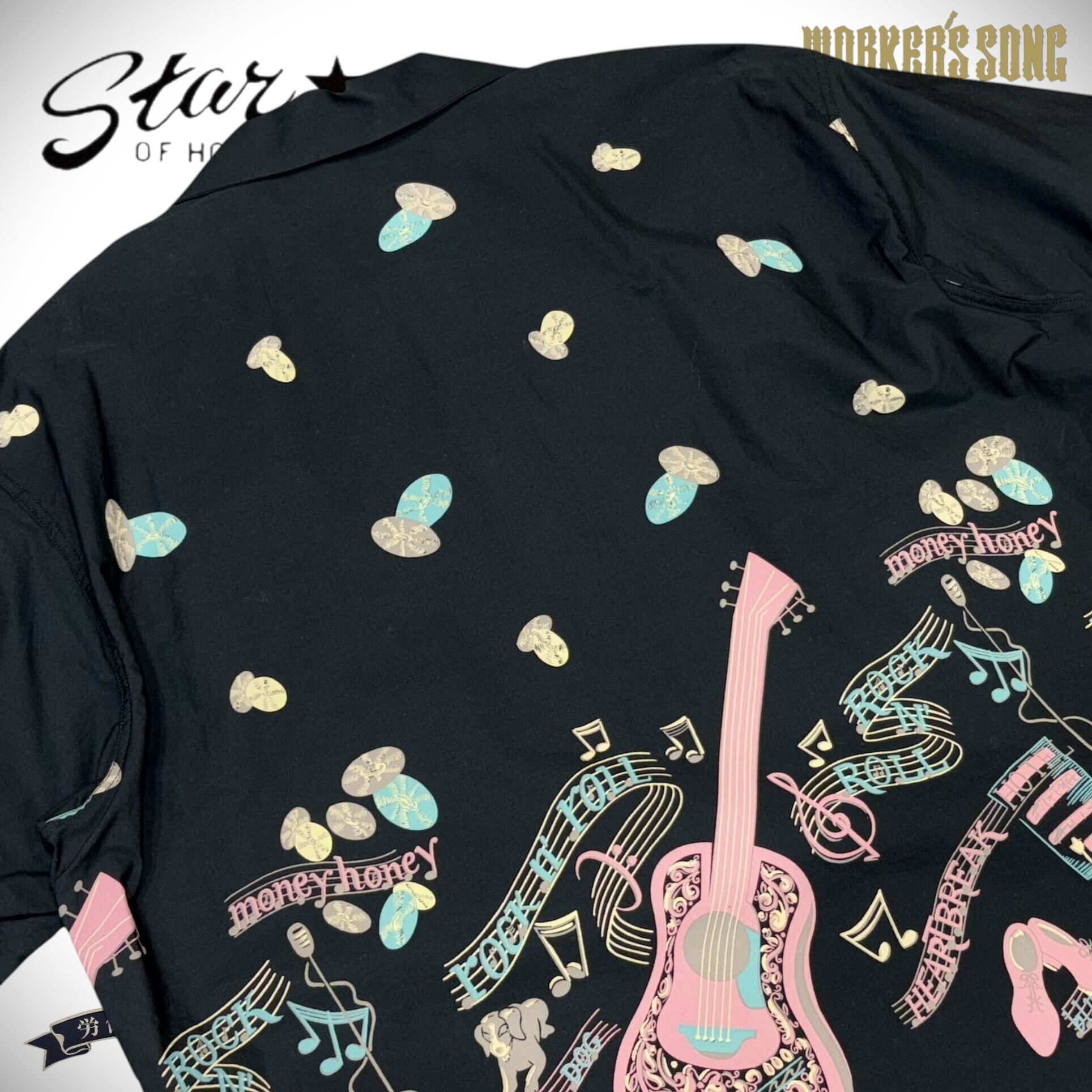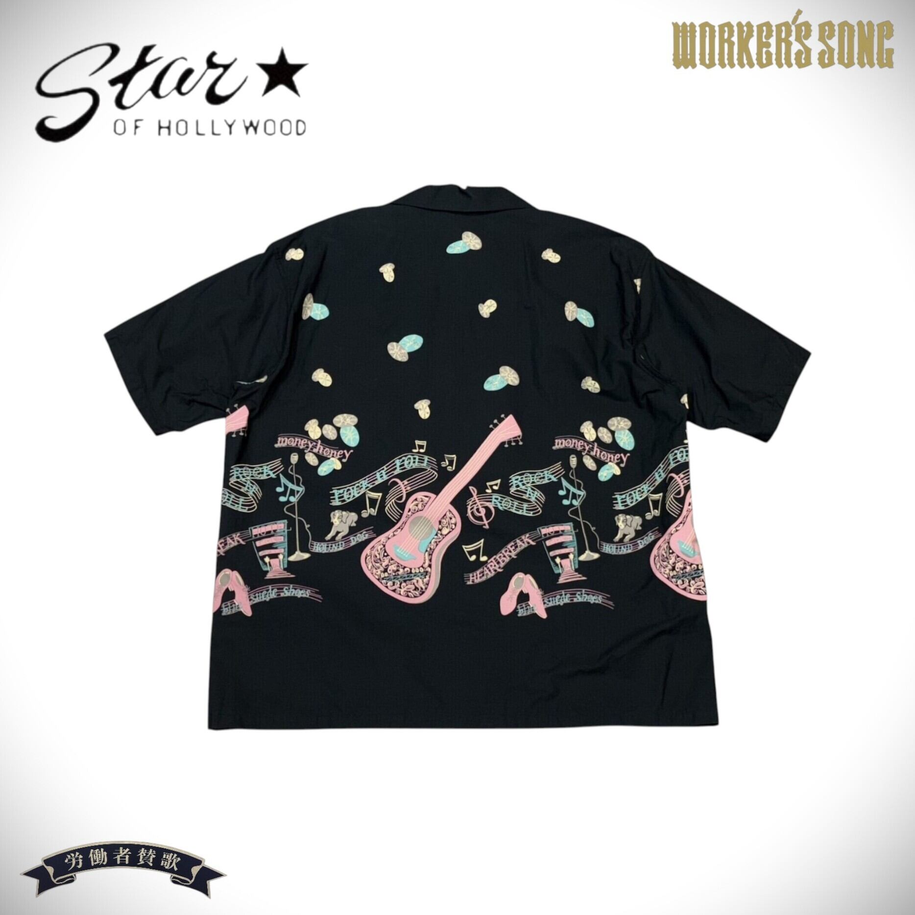 スター オブ ハリウッド コットン シャツ エルヴィス ギター アメカジ SH39312 119)ブラック XLサイズ