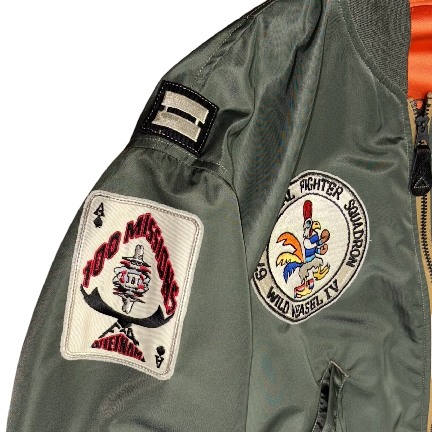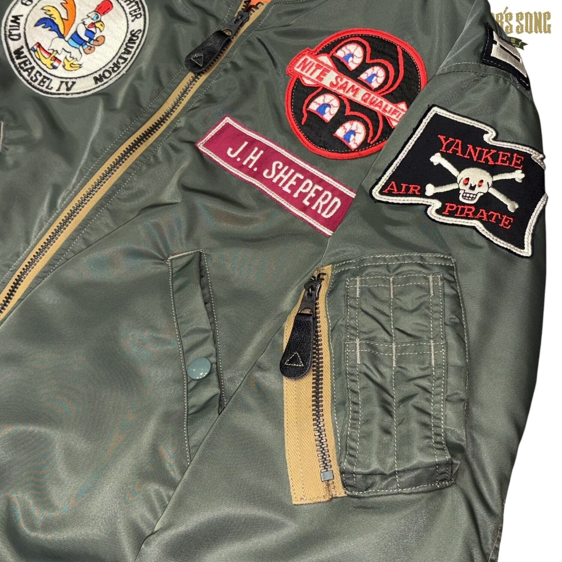 第二次世界大戦中の1941年に発足され第67戦術戦闘飛行隊は長い歴史を持つ一線級の名門飛行隊である。ベトナム戦争では名機F-4 ファントム II を北ベトナムのSAM(赤外線追尾型地対空ミサイル)の脅威に対処する改造を施されだ”マクダネル・ダグラス F-4C ファントム II ワイルド・ウィーゼル IV”を装備してベトナム戦争終戦まで闘い続けた。ワイルド・ウィーゼル機の任務は、そのレーダーで目標とする敵対空防衛網の注意を自分に向けさせることである。その上で、ワイルド・ウィーゼル又はその僚機が正確に敵防空施設を目標として破壊することができるように、敵性レーダーが発する電波をその発言源まで追跡する大変難易度と危険性が高いミッションであった。パッチは全てタイや日本で作られたシアターメイドで、ファイティングコックの周囲のスクロールにはワイルド・ウィーゼル IVの文字がパイロット達のプライドを表している。ネームタグ上方の"NITE SAMQUALIFIED”パッチは夜間戦闘でSAMを回避若しくは破壊した経験を誇示した物である。右袖のパッチはマクダネル・ダグラス社がF-4を駆って100ミッションを達成したパイロット達に贈呈した物で、メーカーが純正でこの様なパッチを自ら作っているのは非常に珍しい。左袖のパッチはベトナム戦争当時に北ベトナムの新聞社がトンキン湾に集結した米空母を揶揄して“空賊”と呼んだ事を米軍将兵が面白がって自らパッチ化した逸話を持つ有名なパッチである。