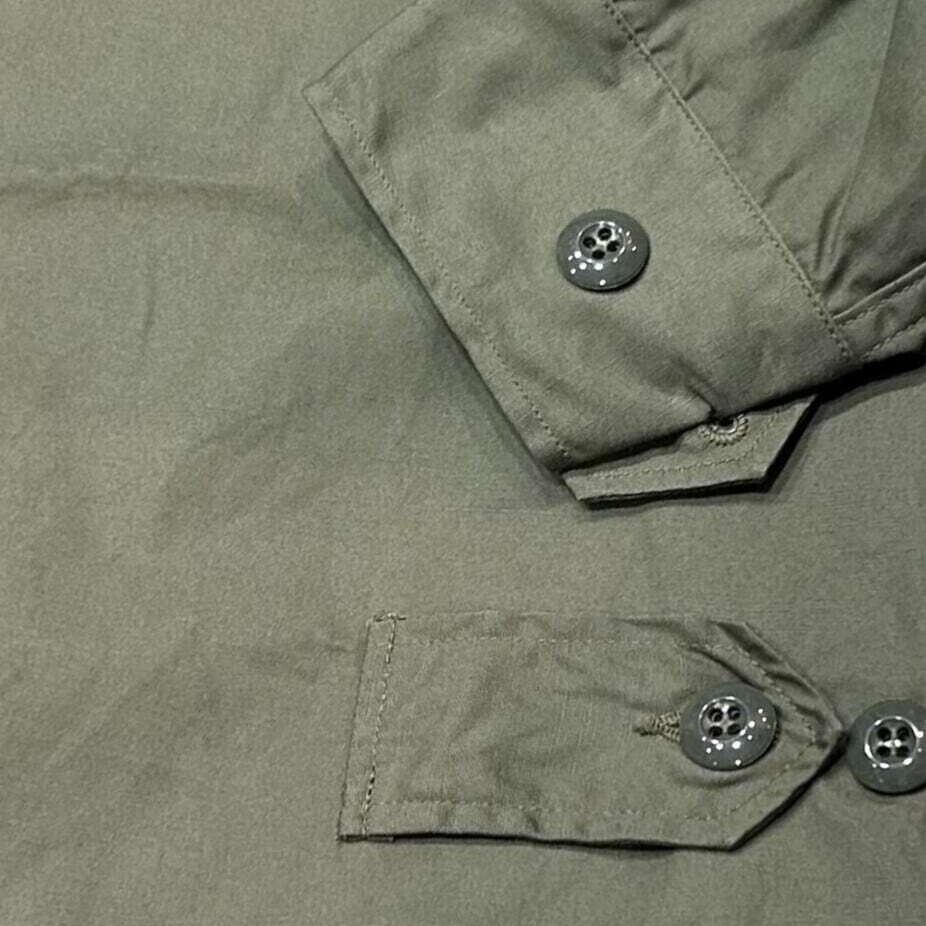 通称『ジャングルファティーグ』の正式名称は『トロピカルコンバットユニフォーム』で、ベトナム戦時に採用、支給された熱帯地用野戦服である。素材には熱帯における気候を考慮して、軽量で乾きやすいコットンポプリンを採用している。型は第二次大戦時のパラシュートコートを改良したもので、一般的には、初期、中期、後期型の3タイプに大別されており、初期型(ファーストモデル)の特徴はポケットフラップから露出したボタンが最大の特徴となっている。現地ベトナムではジャングルでの戦いが大半で、露出したボタンが枝や装備品に引っ掛かってしまうことから、セカンドモデルではフラップの外に露出しない隠しボタン仕様に改良された。さらにサードモデルではエポレット、ウエストの調節タブ、前立てフラップが省略された。また、後期型の素材はコットンポプリンからリップストップ生地へと変更されている。