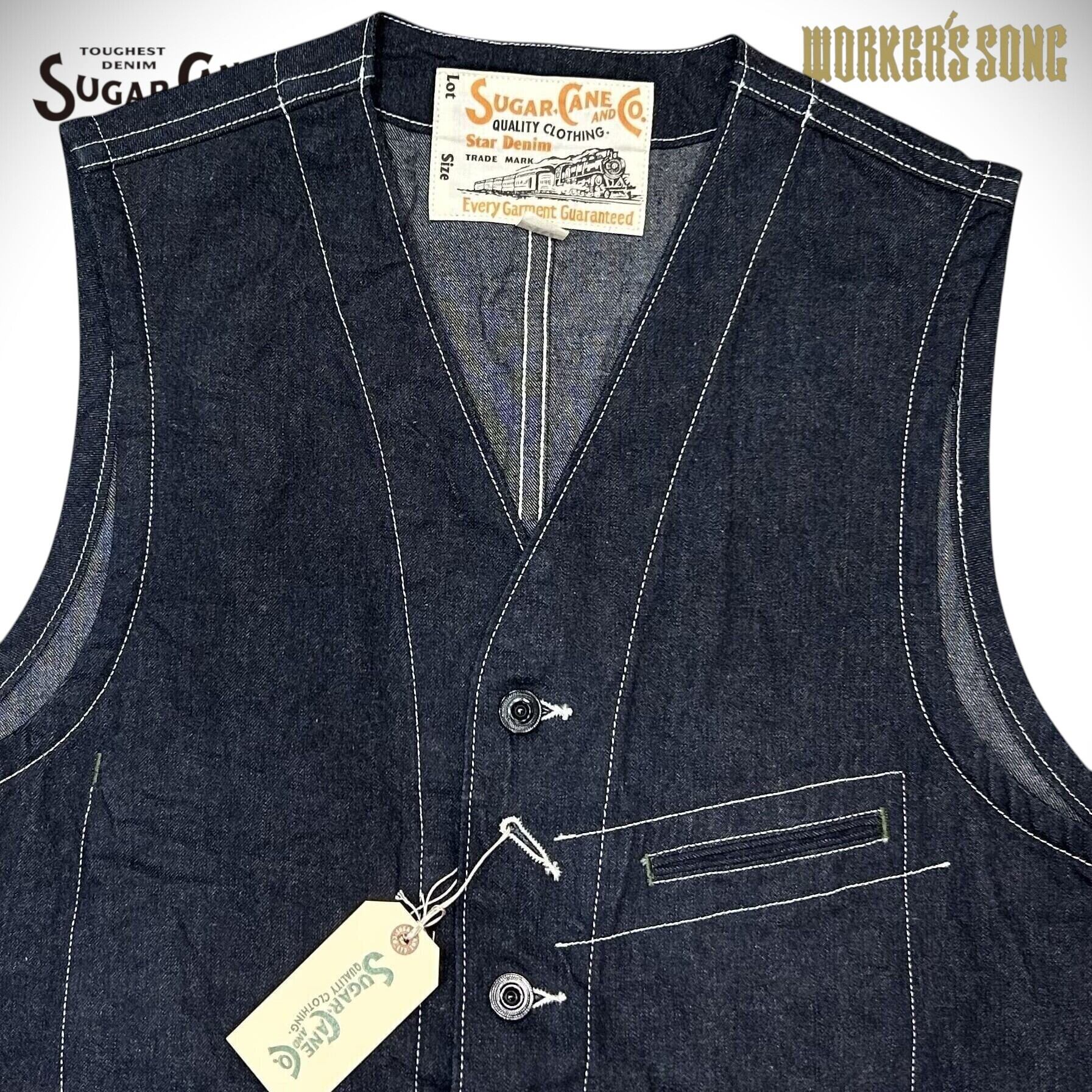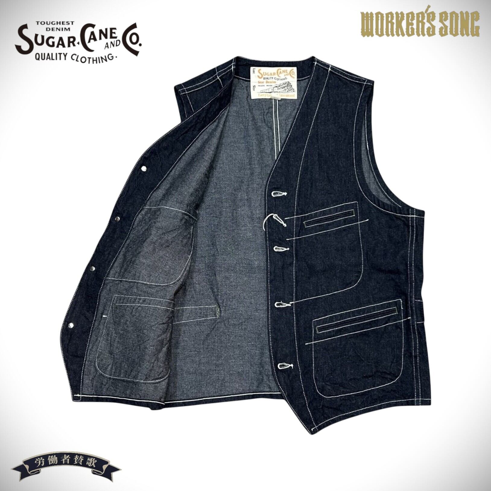 シュガーケーン 11oz. ブルーデニム ワークベスト アメカジ SC15702 421A)ネイビー
