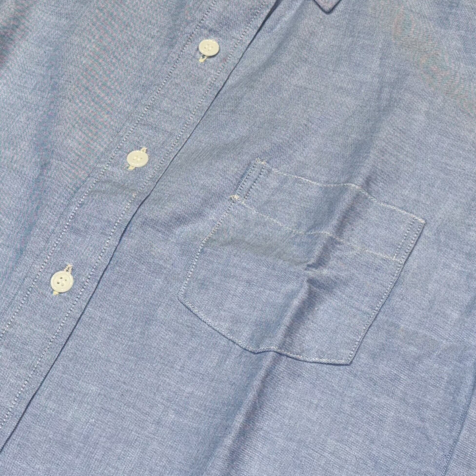 米空軍が1950年代中期に採用したシャツ。ミリタリーシャツといえばワークウェアに見られるようなタフな素材が多い中、この素材は主にボタンダウンシャツに用いられる上質なオックスフォード地を使用している。外観は胸にポケット一つというシンプルなデザインで、裾と台襟に施された手押しのスタンプがミリタリーアイテムらしいディテールを持つ。サイドのマチには生地の耳が使われており、古き良き時代に作られた事が確認できる。